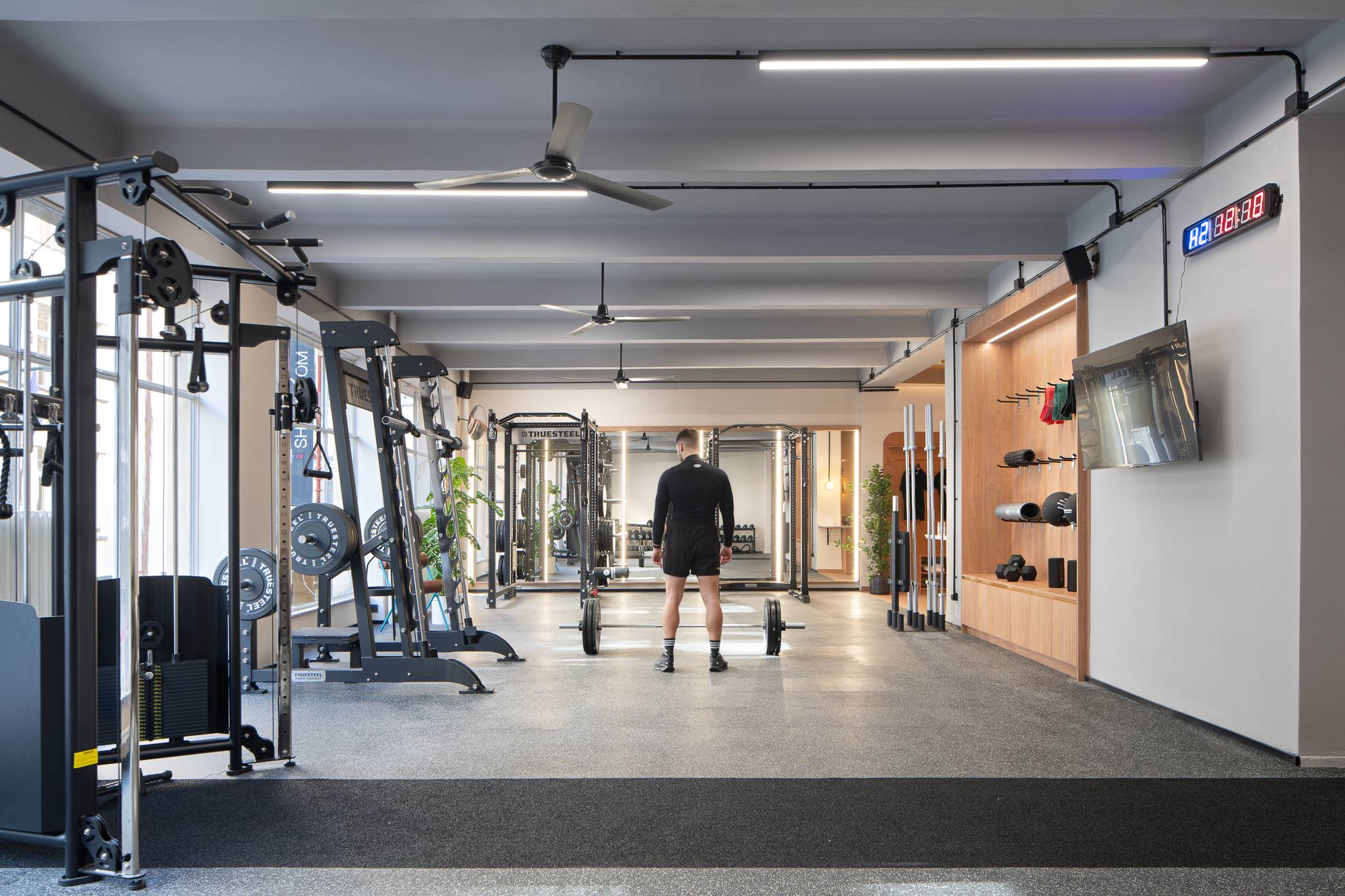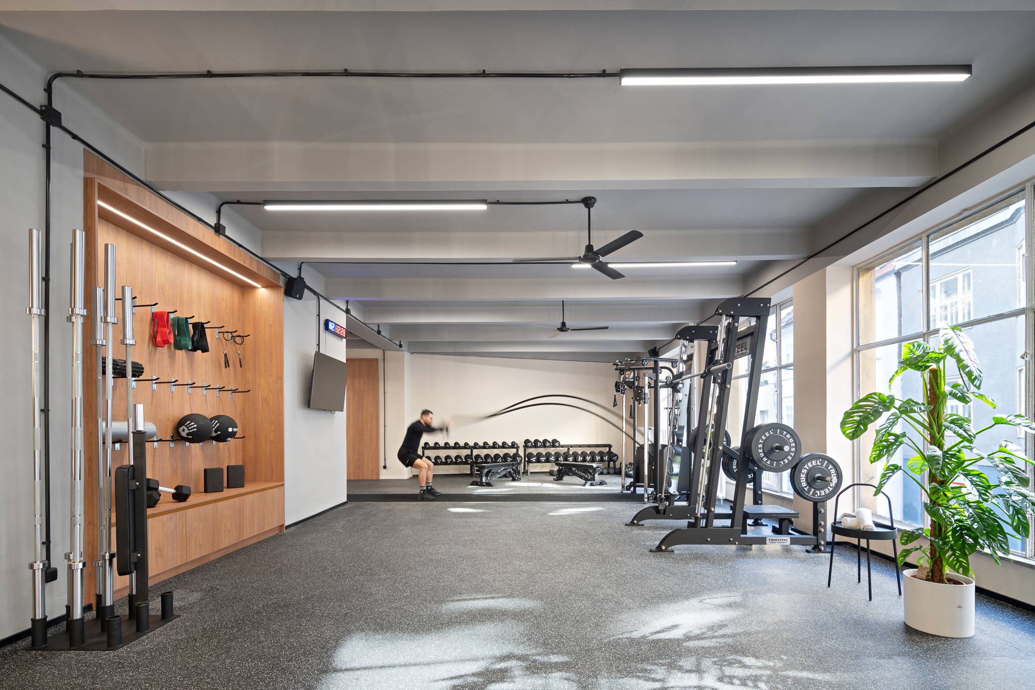 LifeGym is the opposite of a busy commercial gym – it is a tréninková laboratoř (training laboratory) designed for focus. Through the use of natural materials, specific lighting, and intentional flow, the space is curated to help you decompress and prioritize the training.